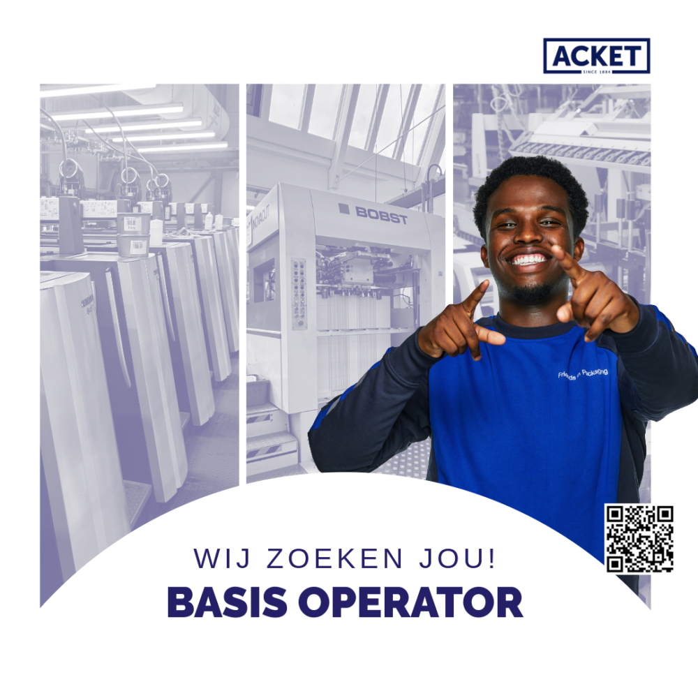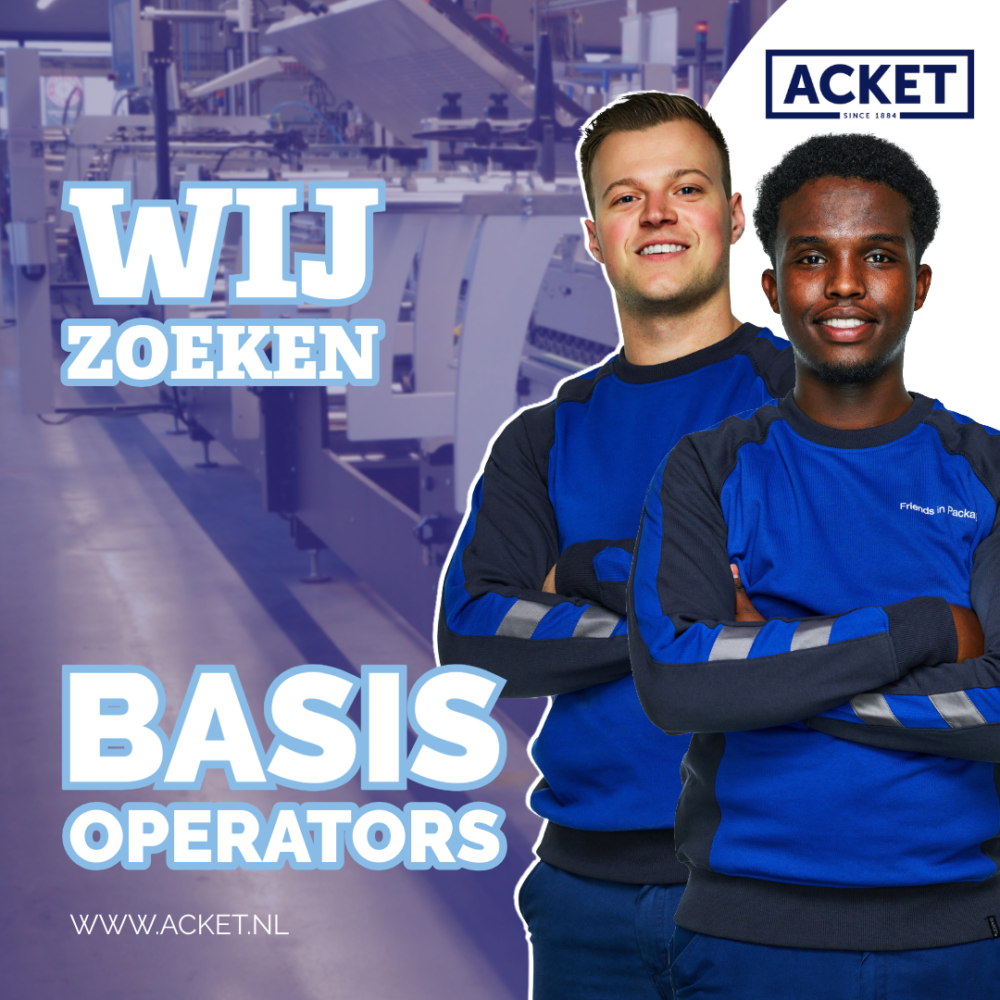 Bij Acket zijn we op zoek naar een basisoperator voor onze afdeling Kartonnage. Op deze afdeling worden de laatste bewerkingen uitgevoerd aan de kartonnen verpakkingen die door onze Drukkerij zijn voorzien van een mooie print en door afdeling Stans in de juiste vorm gestanst.