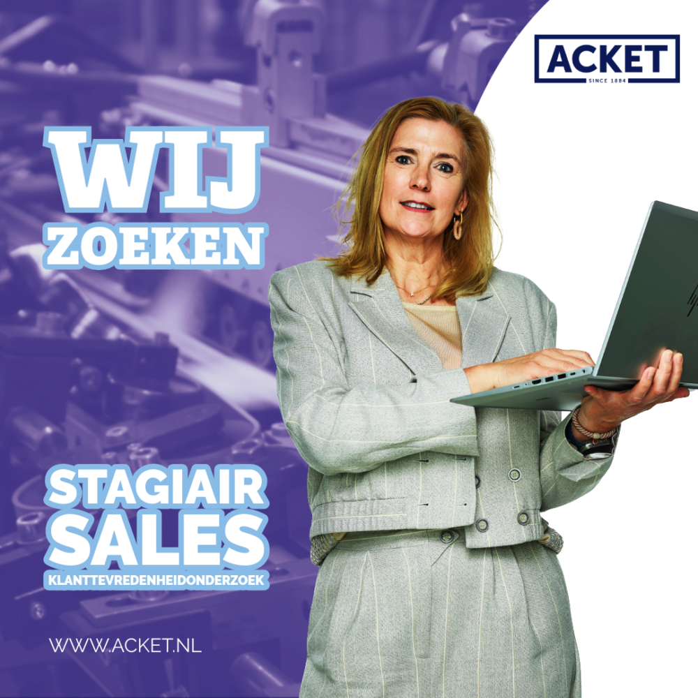 Word jij onze nieuwe stagiair en Friend in Packaging? Neem contact op met Floor Peters via floor.peters@acket.nl of 0412-699 713, wie weet ben jij binnenkort onze nieuwe stagiair!